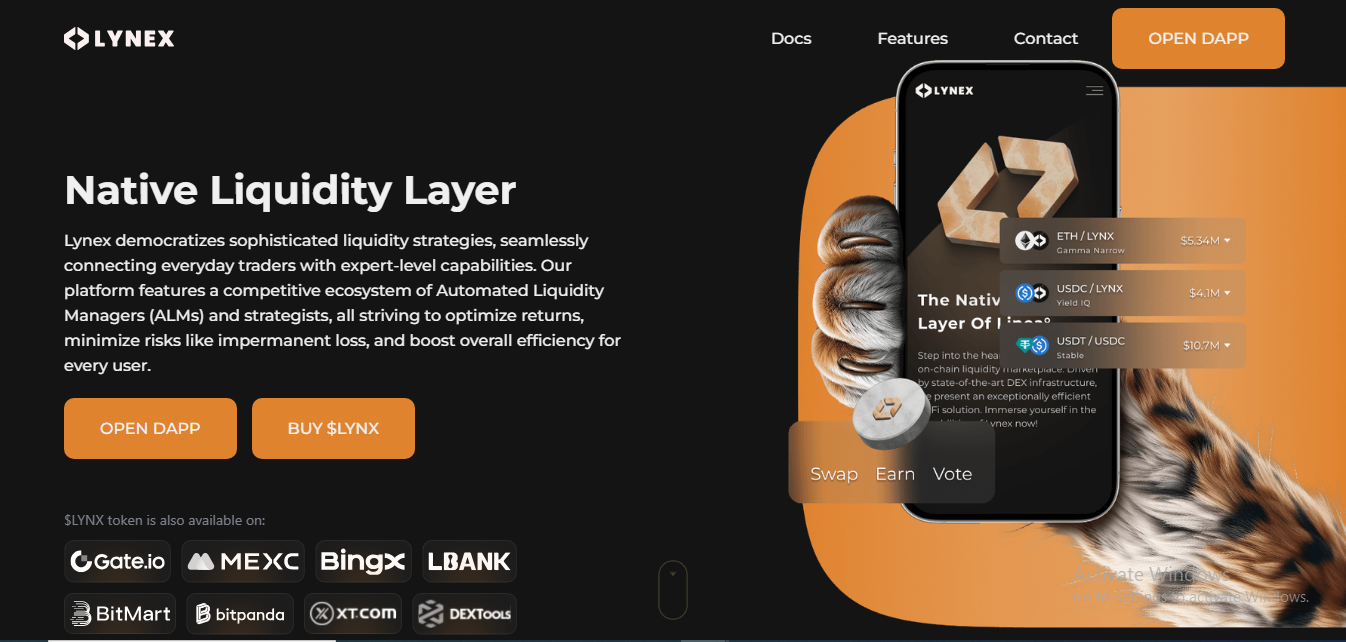 **Lynex** provides a platform for users to trade cryptocurrencies, manage investments, and interact with DeFi protocols in a decentralized manner. It aims to offer advanced tools and features for both individual traders and institutional investors.